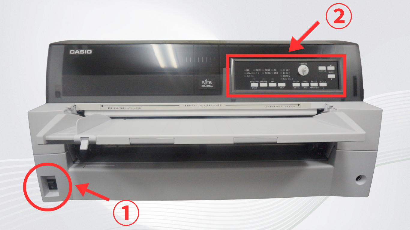 ①プリンタの電源スイッチをオフにします