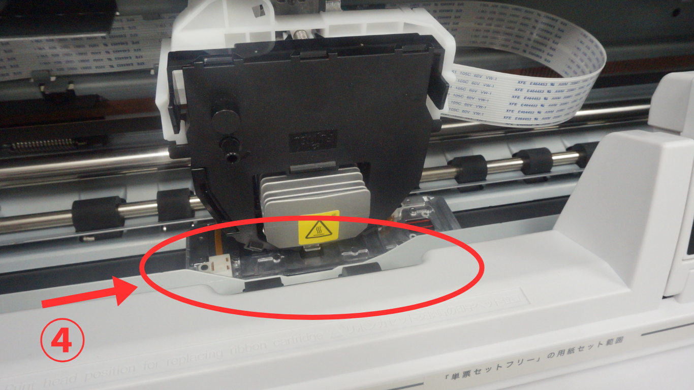 ④インクリボンをセットする印字ヘッドが、取外し位置にあることを確認します。