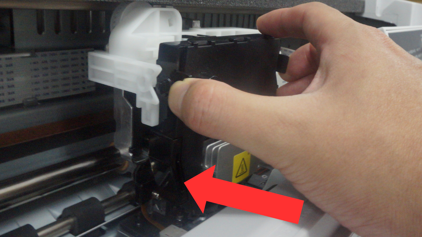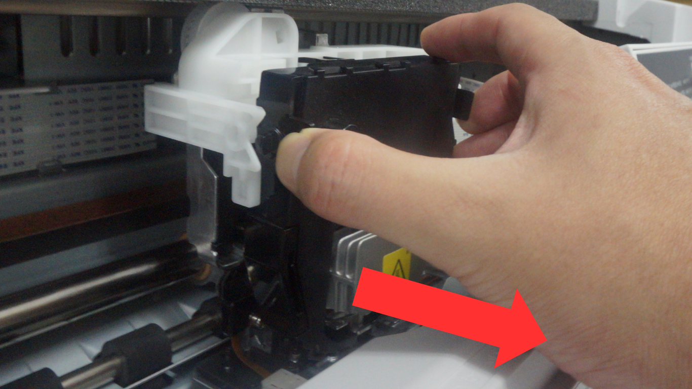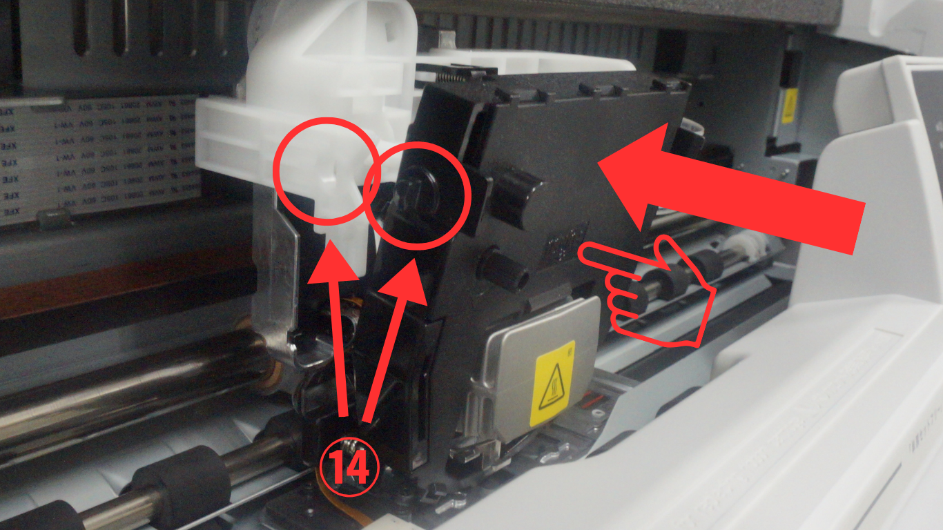 ⑯印字ヘッドを左右に動かして、スムーズに動くか確認します。