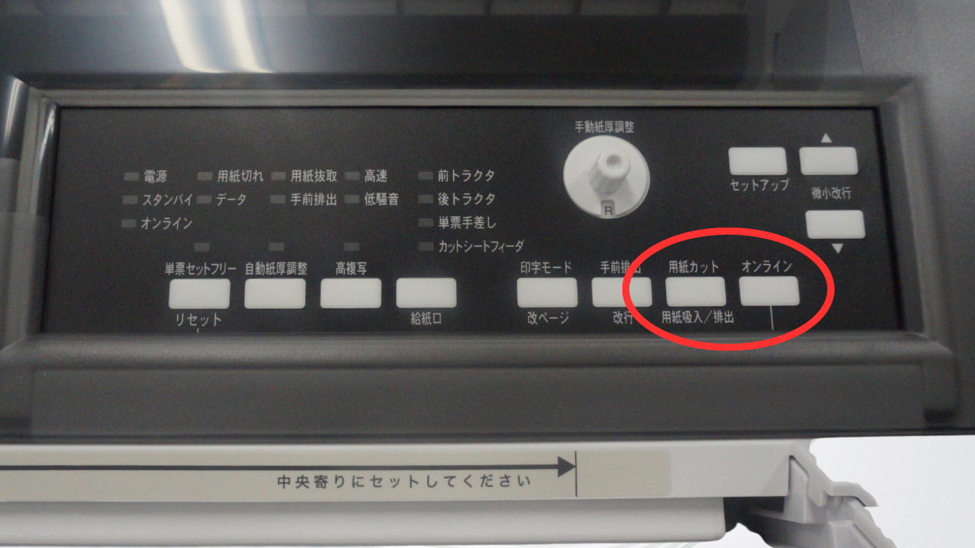 B.「用紙カット(用紙吸入/排出)」ボタンを押します。