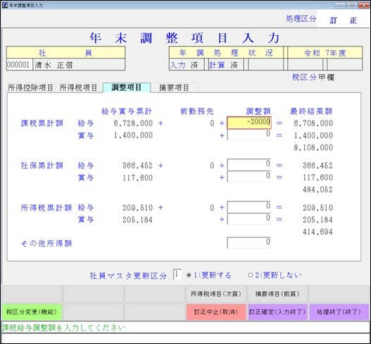 年末調整業務 → 年調入力計算業務 → 年末調整項目入力